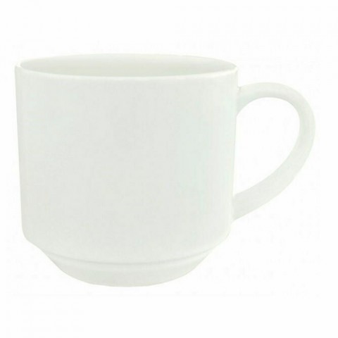 Oneida® - Cup, 7 oz., 2-3/4", stacking, rolled edge, handled, 100% lead and cadmium-free, chip resistant, dishwasher and microwave safe, porcelain, glazed finish, warm white, Luzerne, Verge (must be purchased in case quantities)