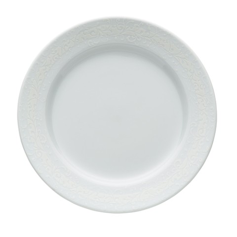 Oneida® - Plate, 7-3/4" dia., round wide rim, embossed paisley design, glazed, porcelain, bright white, Luzerne, Ivy Flourish (must be purchased in case quantities) (limited lifetime warranty contact factory for details) (Special order item, contact factory for more details)