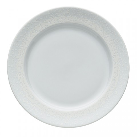 Oneida® - Plate, 8-1/4" dia., round wide rim, embossed paisley design, glazed, porcelain, bright white, Luzerne, Ivy Flourish (must be purchased in case quantities) (limited lifetime warranty contact factory for details) (Special order item, contact factory for more details)