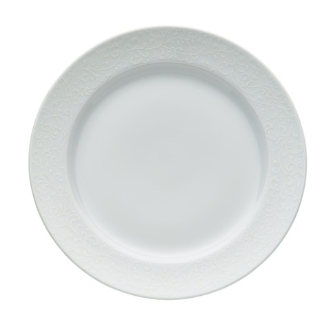 Oneida® - Plate, 9-1/4" dia., round wide rim, embossed paisley design, glazed, porcelain, bright white, Luzerne, Ivy Flourish (must be purchased in case quantities) (limited lifetime warranty contact factory for details) (Special order item, contact factory for more details)