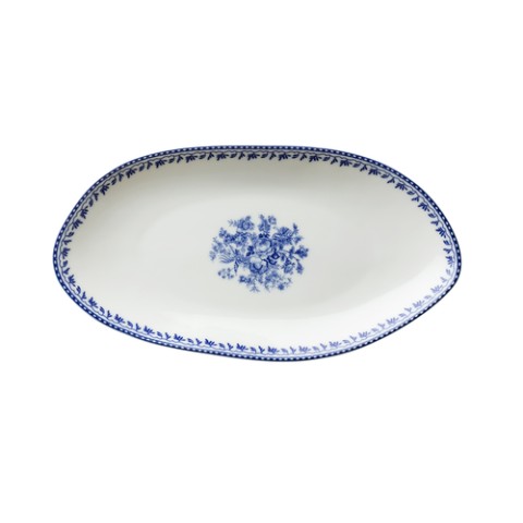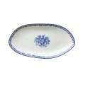 Oneida® - Plate, 9-3/4" dia., irregular oval, blue floral design, warm white, glazed, porcelain, Luzerne, Lancaster Garden™ (must be purchased in case quantities) (limited lifetime warranty contact factory for details)