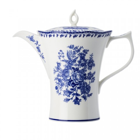 Oneida® - Teapot, 12 oz., 7", with lid, handled, blue floral design, warm white, glazed, porcelain, Luzerne, Lancaster Garden™ (limited lifetime warranty contact factory for details) (Special order item, contact factory for more details)