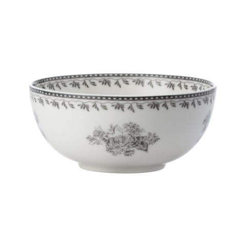 Oneida® - Bowl, 7 oz., 4-1/4" dia., irregular round, grey floral design, warm white, glazed, porcelain, Luzerne, Lancaster Garden™ (must be purchased in case quantities) (limited lifetime warranty contact factory for details)