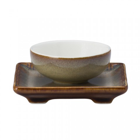 Oneida® - Chinese Saucer, 3", rectangular, two-tone glaze, porcelain, sama, Rustic (must be purchased in case quantities) (limited lifetime warranty contact factory for details) (Special order item, contact factory for more details)