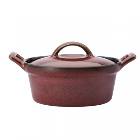 Oneida® - Casserole, 8 oz., 6-3/4" dia., round, with lid and handles, two-tone glaze, porcelain, crimson, Rustic (limited lifetime warranty contact factory for details)