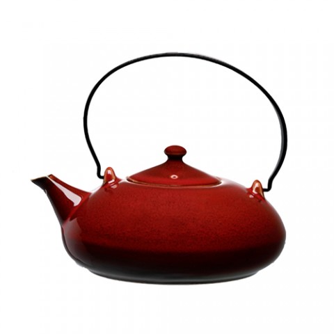 Oneida® - Tea Pot, 14 oz., 6-1/4", with lid and metal handle, two-tone glaze, porcelain, crimson, Rustic (limited lifetime warranty contact factory for details)