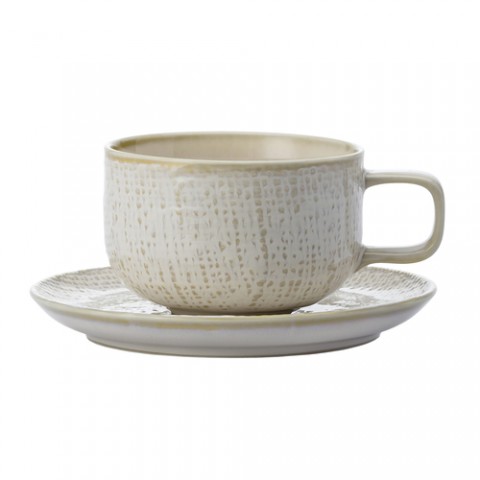Oneida® - Saucer, 5-1/2", round, for 530, woven surface, reactive glaze, tea stained edge, porcelain, white body, Luzerne, Knit (must be purchased in case quantities)