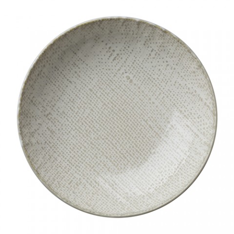 Oneida® - Bowl, 24 oz., 9" dia., round, deep, coupe, woven surface, reactive glaze, tea stained edge, porcelain, white body, Luzerne, Knit