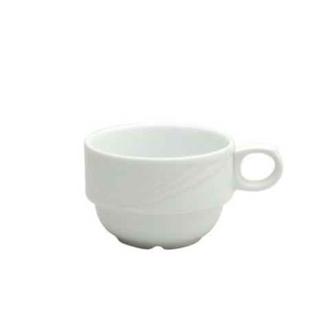 Oneida® - Cup, 7-1/2 oz., 4-7/8", low, round, handled, embossed surface, porcelain, bright white, Buffalo, Arcadia™ (must be purchased in case quantities)
