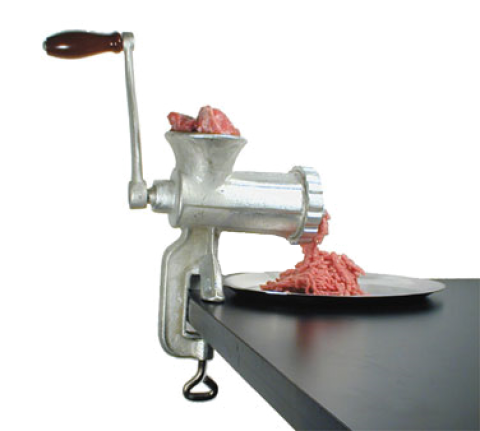 Meat Grinder, manual, clamp style, table mount, includes: knife and 3/16" plate, heavy-duty cast iron, tin plated