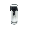 Airpot, 2.2 liter, push button style, glass lining, carrier handle, black plastic lid, stainless steel, mirror finish