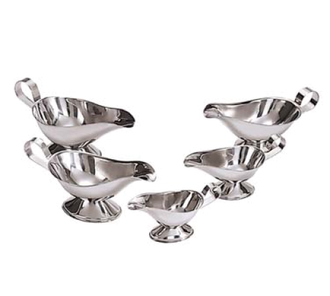 Gravy Boat, 10 oz., loop handle, tapered spout, oval base, stainless steel, mirror finish