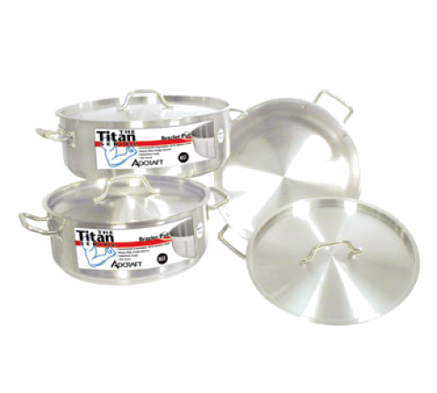 Titan Series™ Brazier Pot, 15 qt., with cover, tri-ply bottom, induction ready, aluminum core, 18 gauge, 18/8 stainless steel, brushed finish sides, NSF