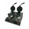 Belgian Waffle Maker, double, 7" round grids, 1-1/4" thick waffles, cook 40 waffles per hour, individual controls, stainless steel body, cast aluminum non-stick coated grids, temperature range 250° to 425° F, 180° rotating hinge, digital timer with buzzer, lighted on/off switch, includes: removable stainless steel drip pan, 120v, 2000 watts, 16.6 amps, (2) 5" power cords with NEMA 5-15P, CE
