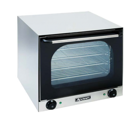 Convection Oven, half size, countertop, electric, 4 half-size sheet pan capacity, 3" spacing, 120 - 570° temp. range, manual controls, 120 minute timer, double wall glass door, interior light, stainless steel constructed, 220v/60/1-ph, 12 amps, 2670 watts, NEMA 6-20P, CE, NSF