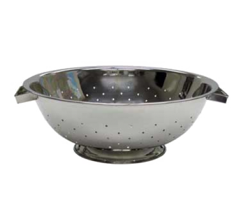 Colander, 8 quart, 13-1/2" diameter, side handles, rimmed, footed base, stainless steel, mirror finish