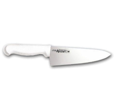 Advantage Series™ Cook's Knife, 8", wide, straight edge, stain-free, dishwasher safe, polypropylene handle, high-carbon steel, white, NSF (individually blister packed)