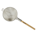 Mesh Strainer, 14" diameter, double mesh, reinforced bowl, pan hooks, heavy duty rod handle, tinned steel
