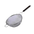 Strainer, stainless steel, double mesh, 8" bowl diameter, dark hardwood inset handle