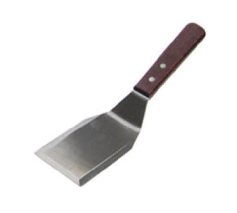 Hamburger Turner, solid, 11" long, 4-1/2" x 3" offset blade, beveled edges, wood handle, heavy stainless steel