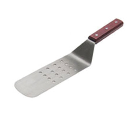Turner, perforated, 14" long, 3" x 9-1/2" blade, flexible, wood handle, stainless steel