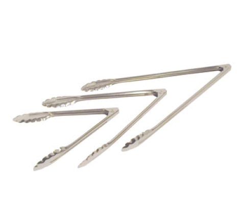 Utility Tongs, 9-1/2", standard, coil spring operated, scalloped edges, light weight 0.4mm, stainless steel, mirror finish