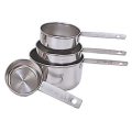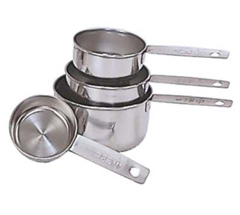 Measuring Cup Set, 4-piece, interior and exterior graduations, flat handle with hanging hole, nestable, includes: 1/4, 1/3, 1/2 & 1 cup capacities, stainless steel, carded