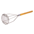 Potato Masher, 5" round head, 24" long, nickel plated rod, wood handle