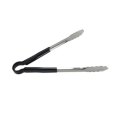Utility Tongs, 10", one-piece, scalloped edge, poly-coated color handle, heavy-duty stainless steel, black