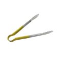 Utility Tongs, 10", one-piece, scalloped edge, poly-coated color handle, heavy-duty stainless steel, yellow