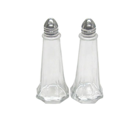 Salt/Pepper Shaker, 1 oz., 4-1/4"H, tower style, glass with chrome plated metal top