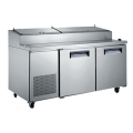U-STAR Refrigerated Pizza Prep Table, 71"W, 2-section, 17.0 cu.ft., side mounted self-contained refrigeration, (2) doors with recessed handles, insulated oversized hinged lid, digital temperature controller with LED display, automatic defrosting, (2) plastic coated wire shelves, removable door gasket, 19" deep x 3/4" thick polyethylene cutting board, includes (9) 1/3 pans, 430 stainless steel exterior, 304 stainless steel interior, (4) 4" casters, 115v/60/1-ph, 4.9 amps, 1/5 HP, 7' cord, NEMA 5-15P, cETLus, ETL-Sanitation