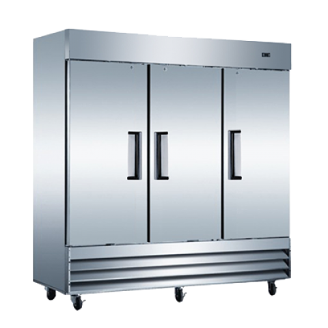 U-STAR Refrigerator, reach-in, 3-section, 81"W, 72.0 cu.ft., bottom mounted self-contained refrigeration with slide out, (9) removable plastic coated wire shelves, front digital temperature controller with LED display, automatic defrosting, self-closing doors with recessed handles, removable door gasket, 304 stainless steel interior, 430 stainless steel exterior, (6) 4" casters, 115v/60/1-ph, 9 amps, 3/4 HP, 7' cord, NEMA 5-15P, cETLus, ETL-Sanitation (special order, container buy only) (contact factory for price)