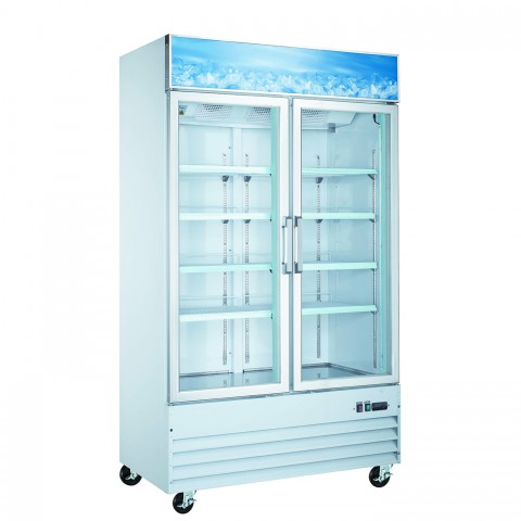 U-STAR Refrigerator Merchandiser, 48"W x 25-1/2"D x 84-3/4"H, 2-section, 42.5 cu.ft., 33°F to 41°F temperature range, bottom mounted self-contained refrigeration, anti-fogging hinged self-closing swing doors, illuminated interior, front-mounted LED temperature display, (8) adjustable plastic coated steel shelves, (2) removable door gasket, automatic defrosting, painted aluminum interior with stainless steel floor, white coated steel exterior, 115v/60/1-ph, 4.8 amps, 1/4 HP, 7' cord, NEMA 5-15P, cETLus, ETL-Sanitation (special order, container buy only, contact factory for price)