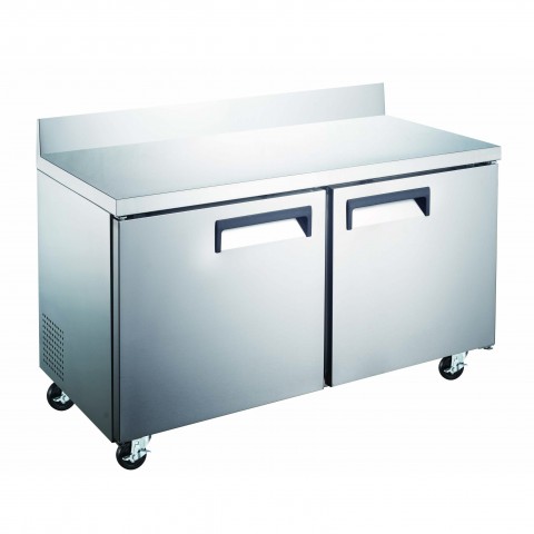 U-STAR Freezer Work Top Counter, 60"W x 29-1/2"D x 38-3/4"H overall size, 14.2 cu.ft., stainless steel work top with aluminum backsplash, (2) self-closing door with 90° stay open feature, (2) adjustable PVC-coated shelves, -8° to 0°F temperature range, LED temperature display, electronic temperature controls, removable installation board, heavy-duty casters (2 with brakes), stainless steel interior & exterior, rear-mounted self-contained refrigeration, R290 refrigerant, 1/4 HP, 115v/60/1-ph, 3.12 amps, NEMA 5-15P, cETLus, ETL-Sanitation (special order, container buy only) (contact factory for price)