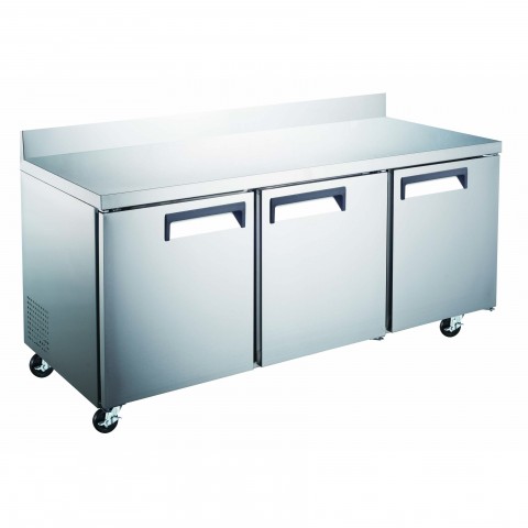 U-STAR Refrigerated Work Top Counter, 71-1/2"W x 29-1/2"D x 38-3/4"H overall size, 16.9 cu.ft., stainless steel work top with aluminum backsplash, (2) self-closing door with 90° stay open feature, (2) adjustable PVC-coated shelves, 33° to 41°F temperature range, electronic temperature controls, LED temperature display, electronic temperature controls, removable installation board, heavy-duty casters (2 with brakes), stainless steel interior & exterior, rear-mounted self-contained refrigeration, R290 refrigerant, 1/5 HP, 115v/60/1-ph, 3.2 amps, NEMA 5-15P, cETLus, ETL-Sanitation (special order, container buy only) (contact factory for price)