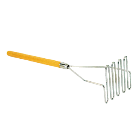 Potato Masher, 5-1/4" square head, 24" long, nickel plate rod, wood handle
