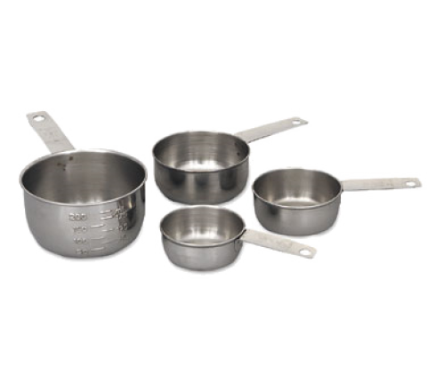 Measuring Cup Set, includes: (1) 1/4, (1) 1/3, (1) 1/2, & (1) 1 cup, round, solid handle with hanging hole, stainless steel