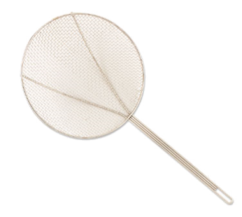 Skimmer, 5" dia. bowl, rigid long hooked handle, square mesh, nickel-plated