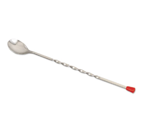 Bar Spoon, 10-1/4"L, one-piece, twisted handle with red ball, stainless steel