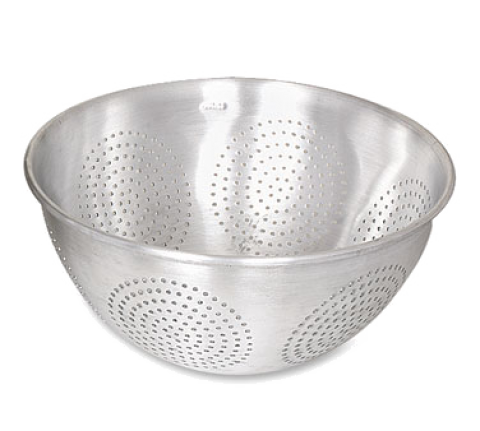 Colander, 15 qt., 16" dia. x 6-3/4" deep, round, without handles, one-piece, aluminum
