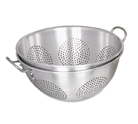 Colander, 15 qt., 16" dia. x 6-3/4" deep, round, rivited handles, one-piece, aluminum