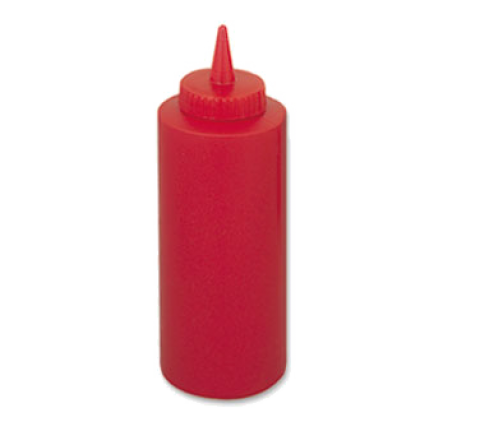 Squeeze Bottle, 12 oz., no-drip tip, for ketchup, polyethylene, red, Made in USA