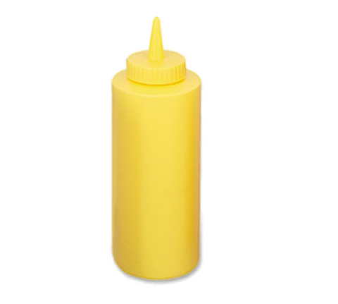 Squeeze Bottle, 12 oz., no-drip tip, for mustard, polyethylene, yellow, Made in USA