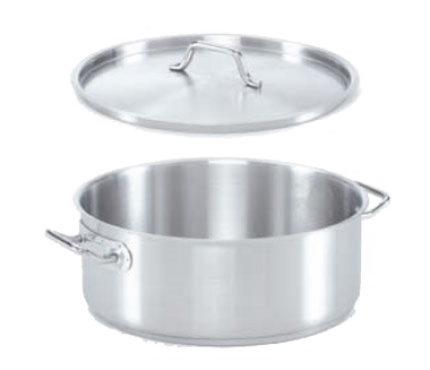 Optima® II E™ Economy Brazier, 25 qt., 17-3/4" dia. x 5-7/8" deep interior, round, with cover, welded handles, corrosion resistant, 21CT stainless steel, satin finish, NSF