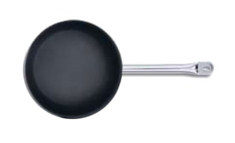 Optima® Fry Pan, coated, 12-5/8" dia. (top) x 2" deep, round, without cover, handles, corrosion resistant, aluminum & 18/0 stainless steel sandwiched bottom, with fushion pro, stainless steel with Teflon® Xtra finish, NSF