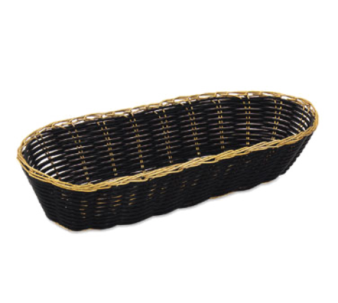 Cracker Basket, 9" x 3-1/2" x 2", oblong, black vinyl with gold rim