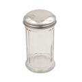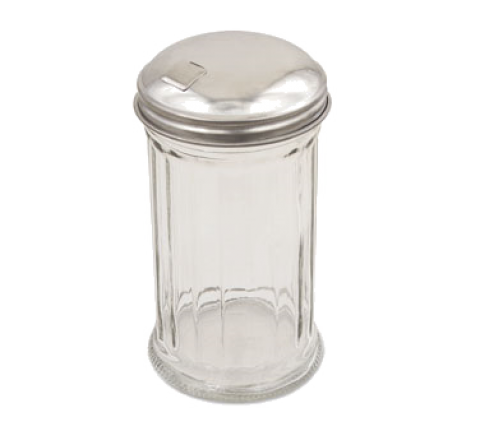 Sugar Pourer, 12 oz., 3" dia. x 5-5/8" H, round, self-closing side lid, fluted glass, stainless steel top (minimum order = 2 dozen)