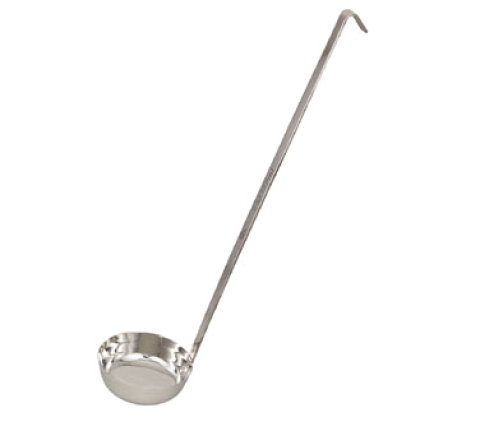 Pizza Ladle, 6 oz., 15"L, flat bottom, standard hooked handle, heavy gauge stainless steel, satin finish