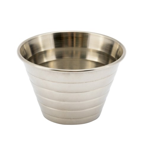 Sauce Cup, 4 oz., 3"H, round, ribbed, stained finish interior, stainless steel exterior